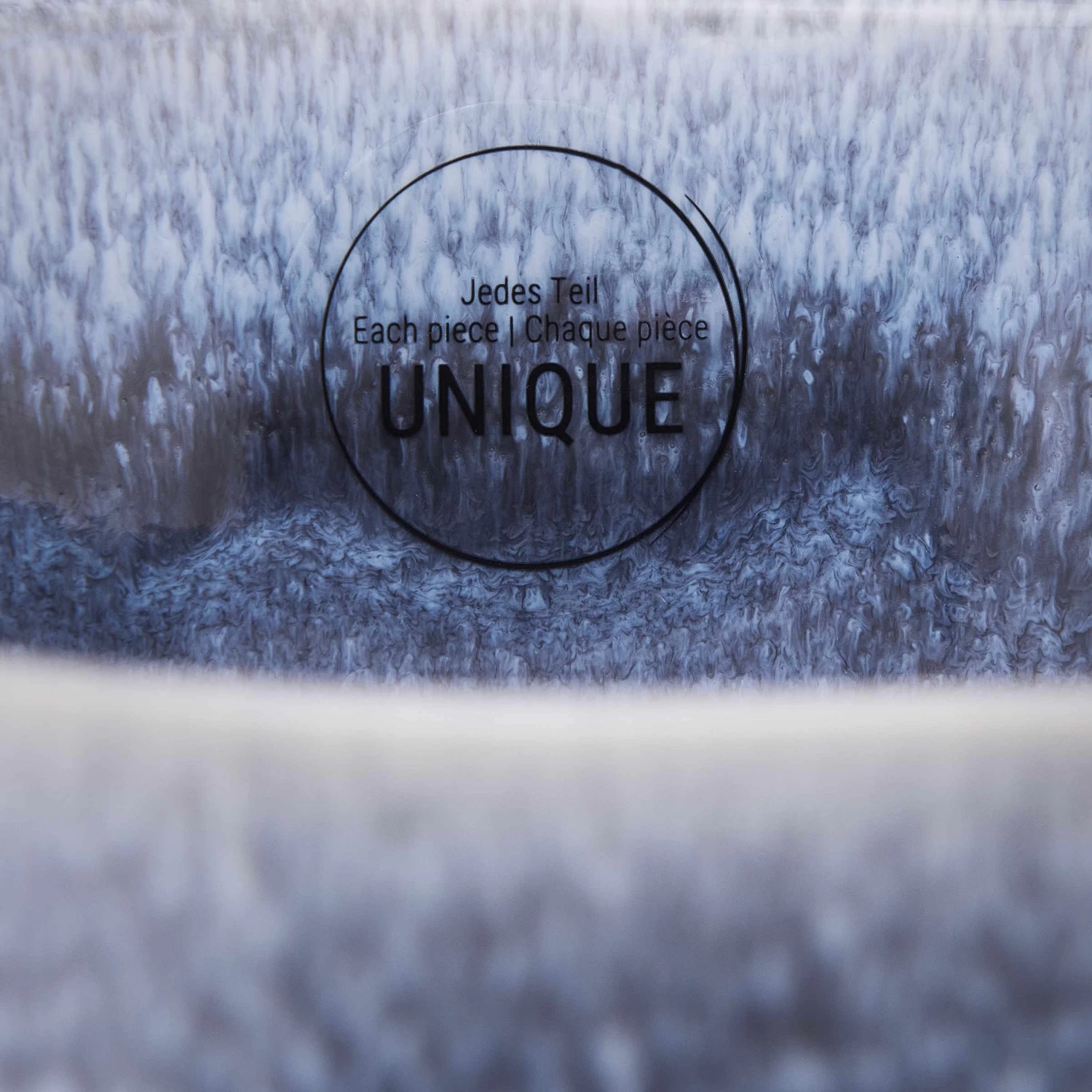 – Reaktive Glasur: Jedes Teil ein Unikat, durch Unterschiede bei der Farbgebung