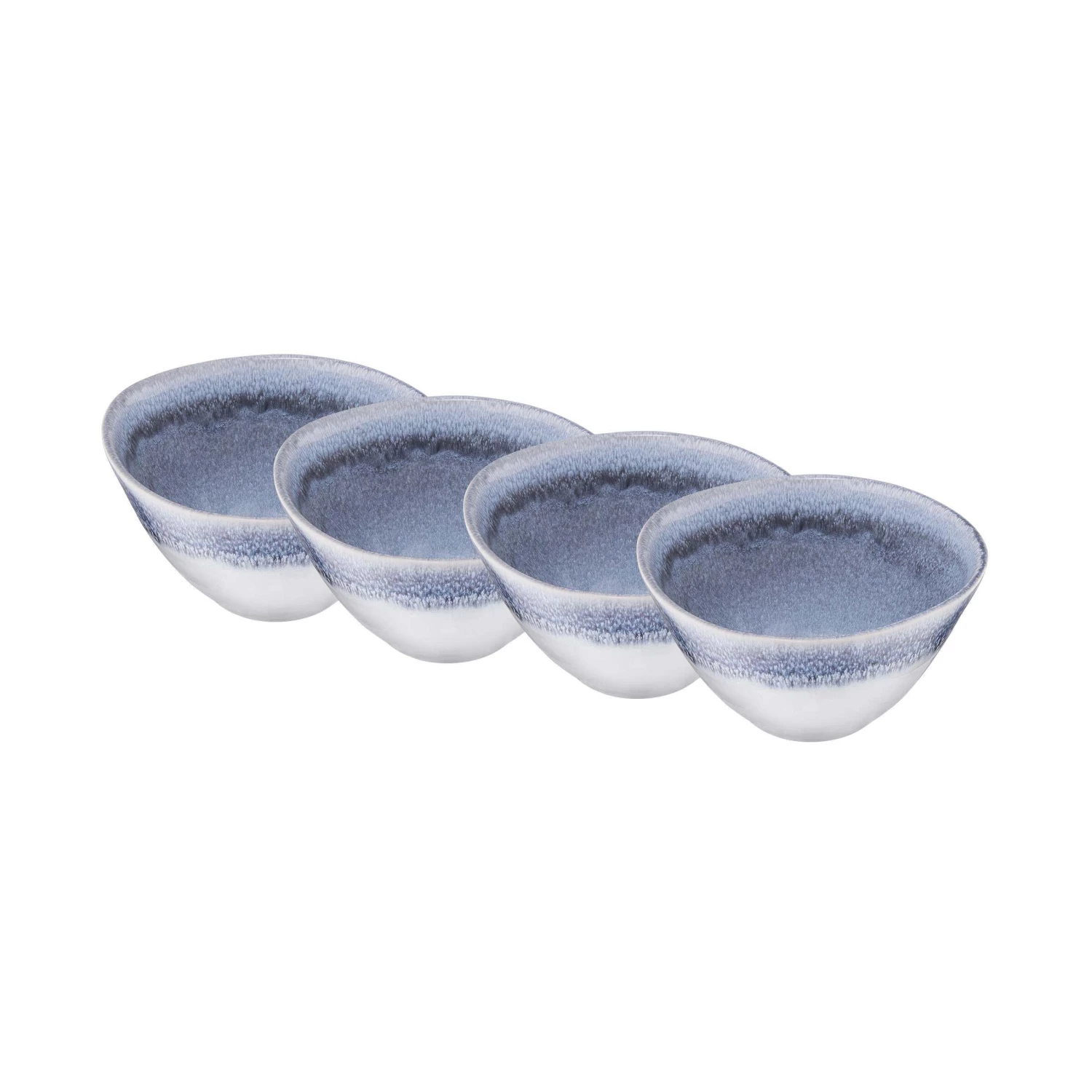 Mit unserer Geschirrserie Atlantis im angesagten Boho-Stil und organischen Formen kommt Extravaganz auf den gedeckten Tisch! Die Schale im 4er-Set aus Steinzeug ist handgefertigt in Portugal. Durch die reaktive Glasur entstehen unregelmäßige Farbverläufe, die jedes Teil der Serie zu einem echten Unikat werden lassen. Atlantis ist in verschiedenen Farben erhältlich, die Sie miteinander kombinieren können und so für Abwechslung auf Ihrem Tisch sorgen. Durch eine Iris-ähnliche Farbzentrierung passen alle Teile perfekt zusammen. Jedes Teil der Serie ist spülmaschinen- und mikrowellengeeignet.