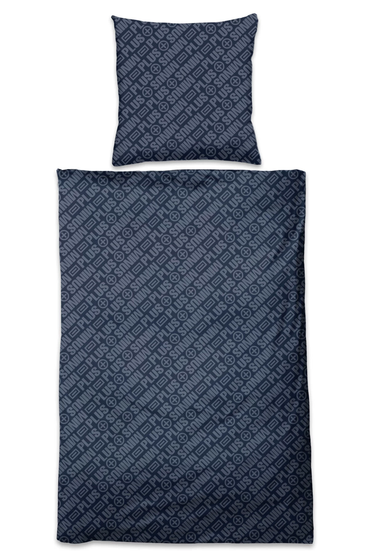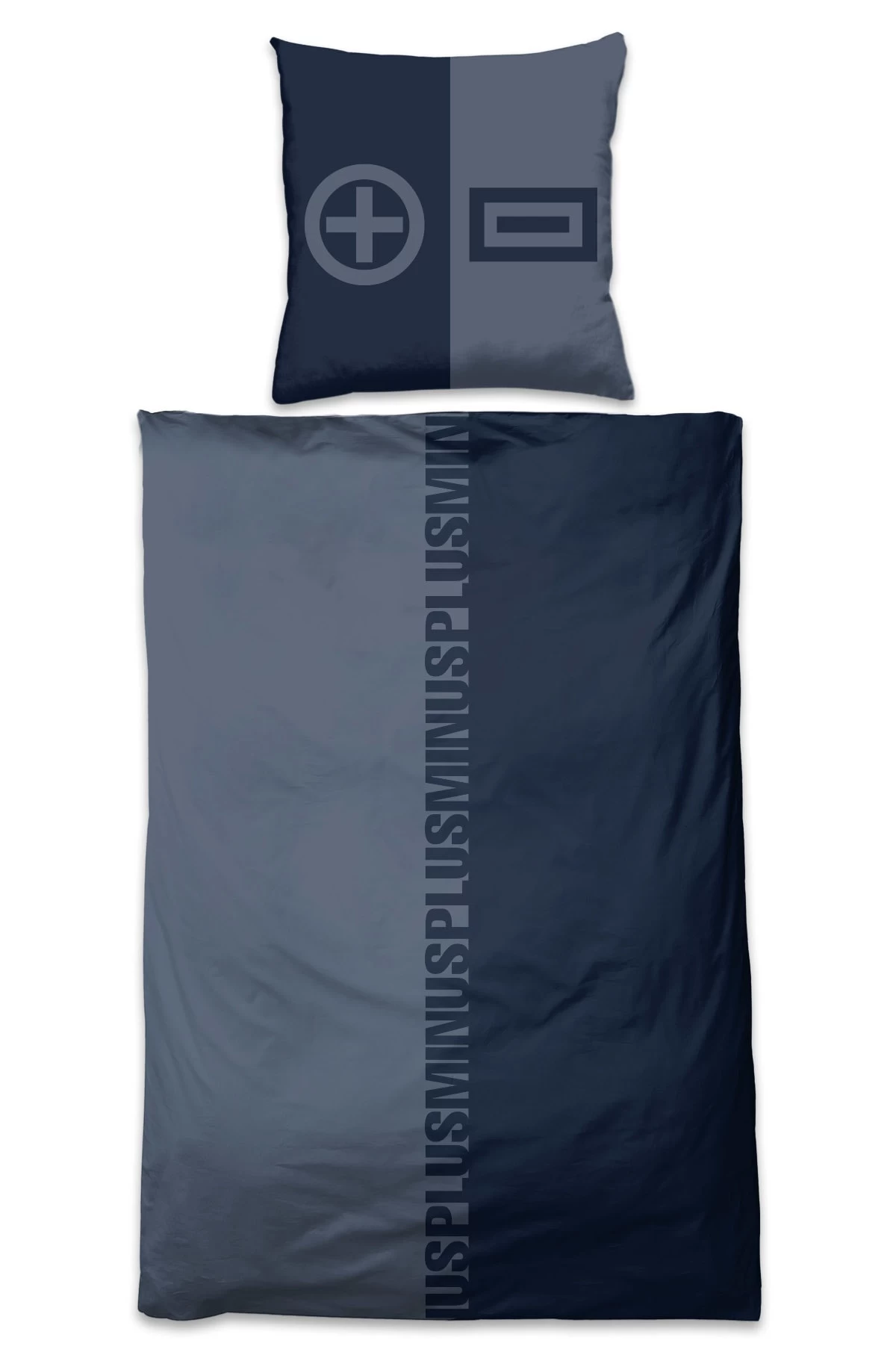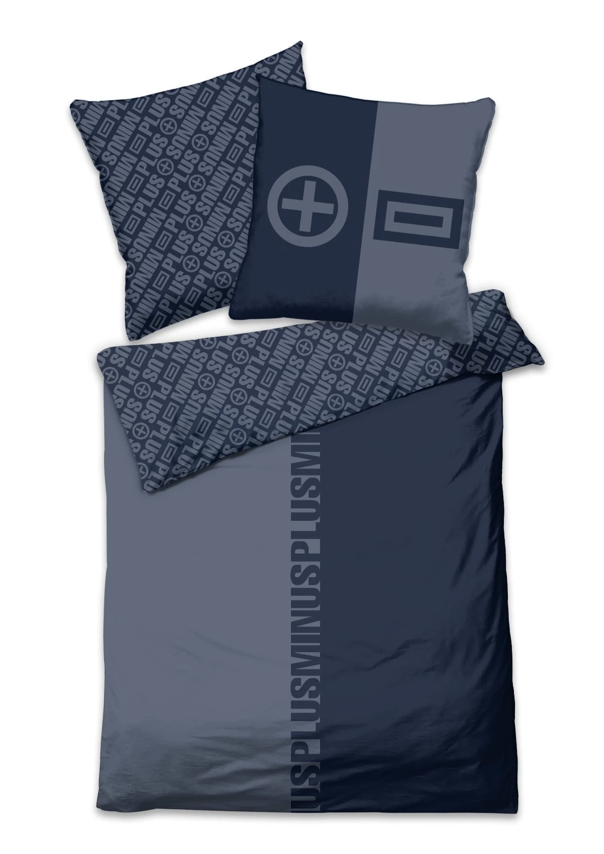 Sportlicher Bettbezug 135 x 200 cm, 1 Kissenbezug 80 x 80 cm – 100% Baumwolle in Renforcé-Qualität – 120 Gramm pro m2 – hochwertiger Reaktivdruck, Rückseite im Allover-Plus-Minus-Print – farblich angepasster Reißverschluss – waschbar bis 60 Grad, kann getrocknet und gebügelt werden – auf Schadstofffreiheit geprüft und zertifiziert