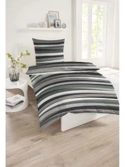 Schiesser Satin-Bettwäsche-Set „Kilian“ In Grau/ Braun/ Grün